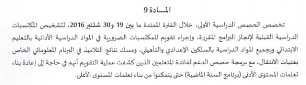 – الانطلاق الفعلي للدراسة ابتداء من يوم الاثنين 19 شتنبر 2016.