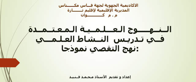 النهوج العلمية المعتمدة في تدريس النشاط العلمي : نهج التقصي نموذجا من إعداد وتقديم الأستاذ محمد فنيد مديرية إقليم تازة للتحميل