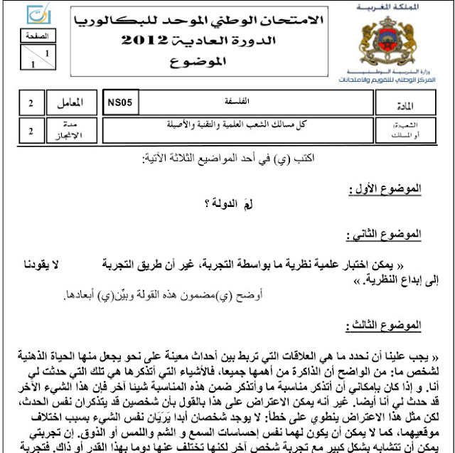 الثانية باك فلسفةامتحانات وطنيةامتحانات وطنية للثانية باك