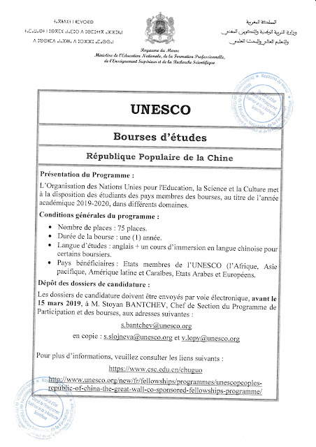 اليونسكو: إعطاء منح دراسية بجمهورية الصين الشعبية برسم الموسم الجامعي 2020/2019
