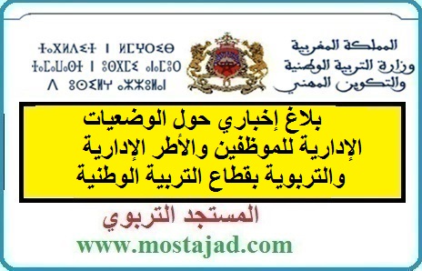 بلاغ إخباري حول الوضعيات الإدارية للموظفين والأطر الإدارية والتربوية بقطاع التربية الوطنية