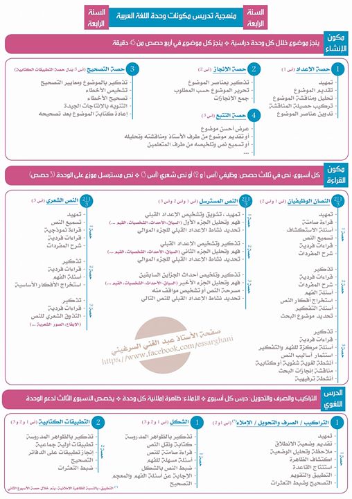 تجميعة منهجية تدريس مكونات وحدة اللغة العربية للمستوى الرابع ابتدائي