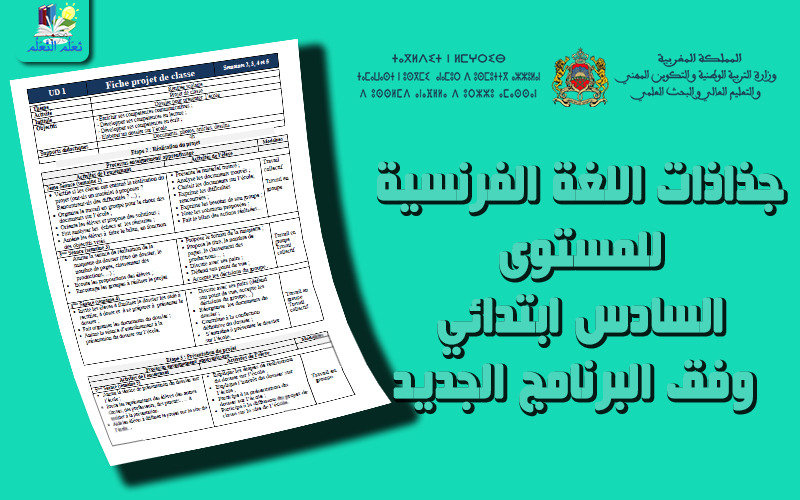 نقدم لكم في هذا الموضوع المتميز تجميعية جذاذات اللغة الفرنسية المستوى السادس ابتدائي وفق المقرر الجديد، بالإضافة لدليل الأستاذ (Guide d’enseignant ) وموارد صوتية ، بشكل غاية في الروعة، يمكنكم تحميل الفرض من الرابط أسفله: