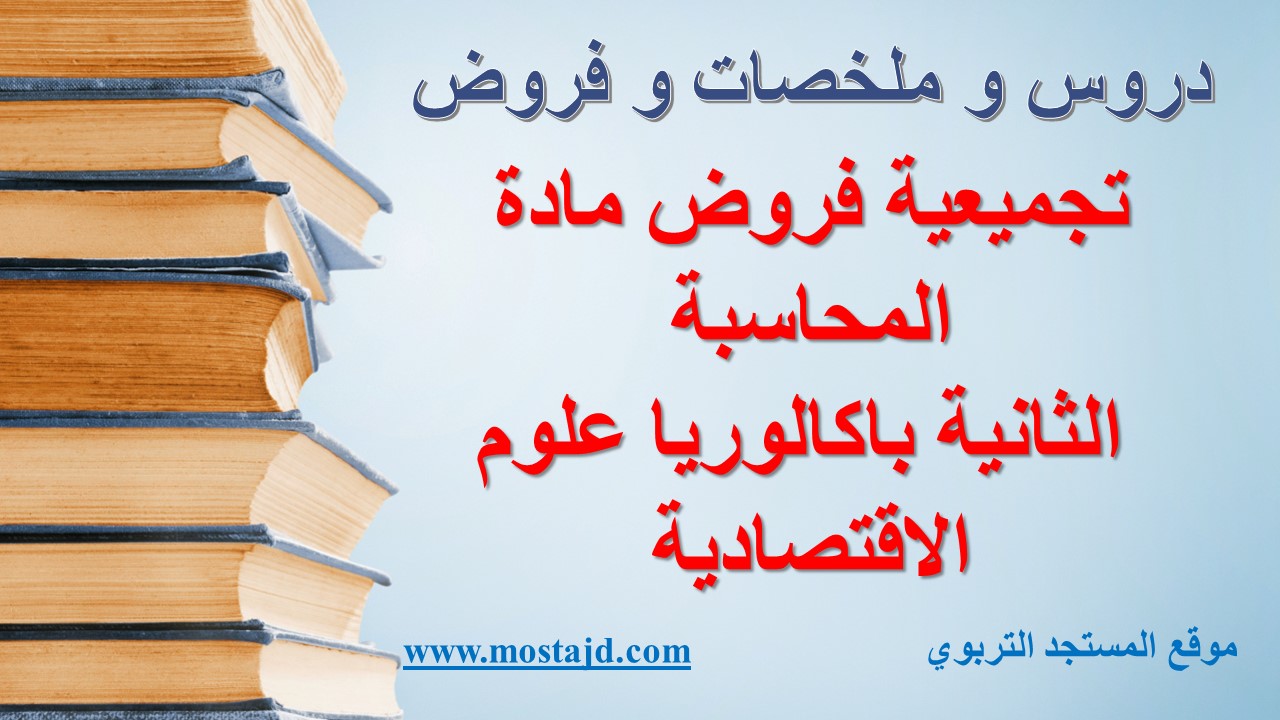 نقدم إليكم تجميعية فروض مادة المحاسبة الدورة الأولى و الدورة الثانية .نهدف من خلال إلى مساعدة تلاميذ السنة الثانية باكالوريا على الاستعداد الجيد لخوض غمار الفروض و الامتحانات .