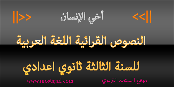 درس في مادة اللغة العربية النصوص القرائية مجال القيم الوطنية والإنسانية النص القرائي أخي الإنسان لتلاميذ السنة الثالثة من التعليم الثانوي الإعدادي.