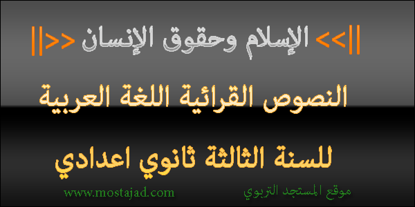 درس في مادة اللغة العربية النصوص القرائية وحدة القيم الإسلامية النص القرائي الإسلام وحقوق الإنسان لتلاميذ السنة الثالثة من التعليم الثانوي الإعدادي.