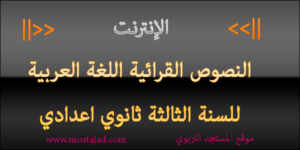 درس في مادة اللغة العربية النصوص القرائية وحدة المجال الحضاري النص القرائي الإنترنت لتلاميذ السنة الثالثة من التعليم الثانوي الإعدادي.