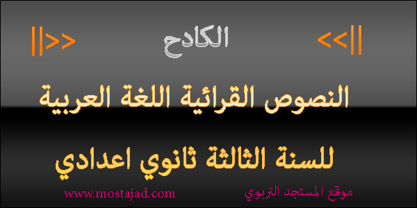 درس في مادة اللغة العربية النصوص القرائية وحدة المجال الاجتماعي والاقتصادي النص القرائي الكادح لتلاميذ السنة الثالثة من التعليم الثانوي الإعدادي.