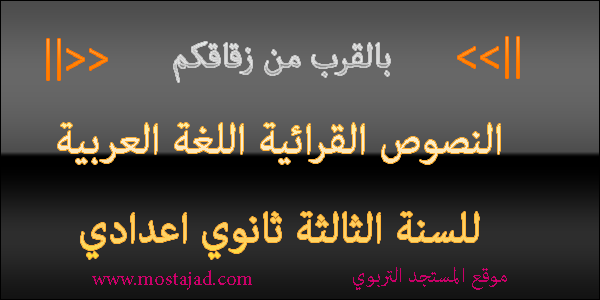 درس في مادة اللغة العربية النصوص القرائية وحدة المجال الاجتماعي والاقتصادي النص القرائي بالقرب من زقاقكم لتلاميذ السنة الثالثة من التعليم الثانوي الإعدادي.