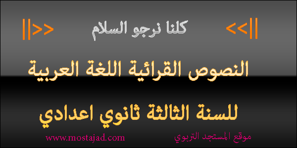 درس في مادة اللغة العربية النصوص القرائية مجال القيم الوطنية والإنسانية النص القرائي كلنا نرجو السلام لتلاميذ السنة الثالثة من التعليم الثانوي الإعدادي.