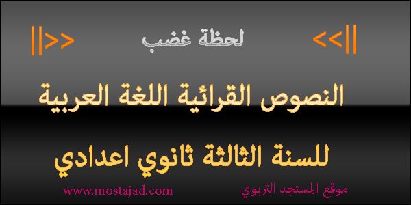 درس في مادة اللغة العربية النصوص القرائية وحدة المجال الاجتماعي والاقتصادي النص القرائي لحظة غضب لتلاميذ السنة الثالثة من التعليم الثانوي الإعدادي.