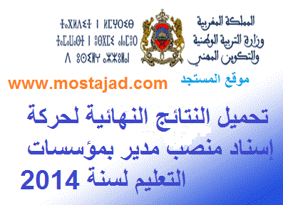 تحميل النتائج النهائية لحركة إسناد منصب مدير بمؤسسات التعليم لسنة 2014 + بلاغ