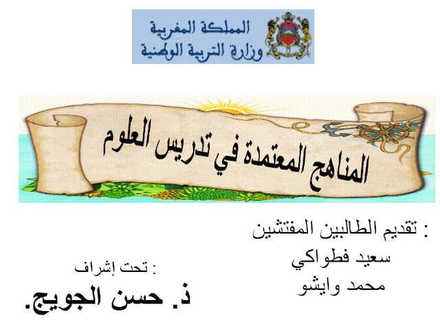 عرض حول المناهج المعتمدة في تدريس العلوم (نهج التقصي) من إنجاز الطالبين المفتشين سعيد فطواكي و محمد وايشو وتحت إشراف ذ.حسن الجويج لهم جميعا جزيل الشكر والتقدير