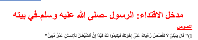 دروس مادة التربية الاسلامية السنة الاولى باكالوريا شعبة العلوم التجريبية مدخل الإقتداء : الرسول صلى الله عليه الرسول في بيته Pour Télécharger لتحميل الملف