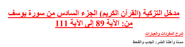 دروس مادة التربية الاسلامية السنة الاولى باكالوريا شعبة العلوم التجريبية مدخل التزكية : قرآن-سورة يوسف -شطر6 Pour Télécharger لتحميل الملف