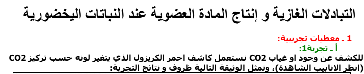 دروس مادة علوم الحياة والارض السنة الأولى باكالوريا شعبة العلوم التجريبية درس التبادلات الغازية وانتاج المادة العضوية Pour Télécharger لتحميل الملف