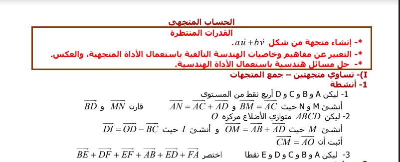 دروس مادة الرياضيات الجذع مشترك علمي درس الحساب المتجهي Pour Télécharger لتحميل الملف