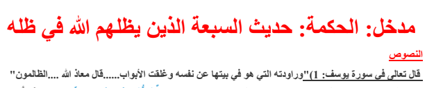 دروس مادة التربية الاسلامية السنة الاولى باكالوريا شعبة العلوم التجريبية درس السبعة الذين يظلهم الله Pour Télécharger لتحميل الملف