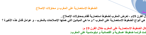 ملخص درس الضغوط الاستعمارية على المغرب ومحاولات الإصلاح السنة الاولى باكالوريا PDF