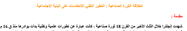 درس انطلاقة الثورة الصناعية : التطور التقني،الإنعكاسات على البنية الإجتماعية