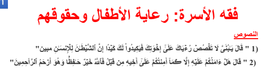 دروس مادة التربية الاسلامية السنة الاولى باكالوريا شعبة العلوم التجريبية درس فــقــــه الأســــرة -رعاية الأطفال وحقوقهم Pour Télécharger لتحميل الملف