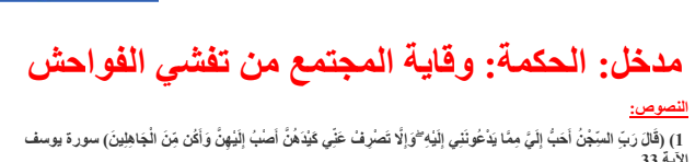 دروس مادة التربية الاسلامية السنة الاولى باكالوريا شعبة العلوم التجريبية درس وقاية المجتمع من تفشي الفواحش Pour Télécharger لتحميل الملف