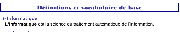 دروس مادة الإعلاميات مستوى الجذع المشترك اداب وعلوم انسانية درس Définitions et vocabulaire de base Pour Télécharger لتحميل الملف