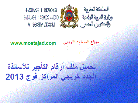 تحميل ملف أرقام التأجير للأساتذة الجدد خريجي المراكز فوج 2013