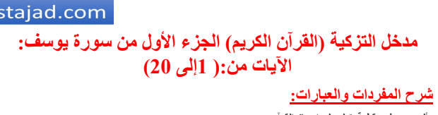 دروس مادة التربية الاسلامية السنة الاولى باكالوريا شعبة العلوم التجريبية تزكية : قرآن- سورة يوسف -شطر 1 Pour Télécharger لتحميل الملف