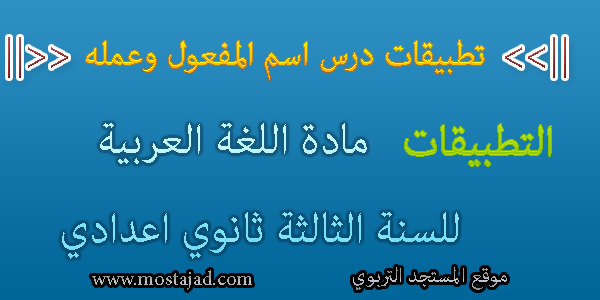 درس في مادة اللغة العربية (مكون التطبيقات) تطبيقات درس اسم المفعول وعمله مع عناصر الإجابة (التصحيح) لتلاميذ السنة الثالثة من التعليم الثانوي الإعدادي.