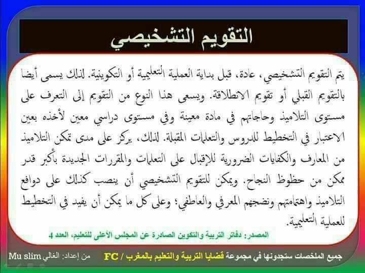 مستجدات التعليم بالمغرب التقويم التشخيصيعلوم التربيةمفاهيم تربويةنماذج مباراة التوظيف بالتعاقد