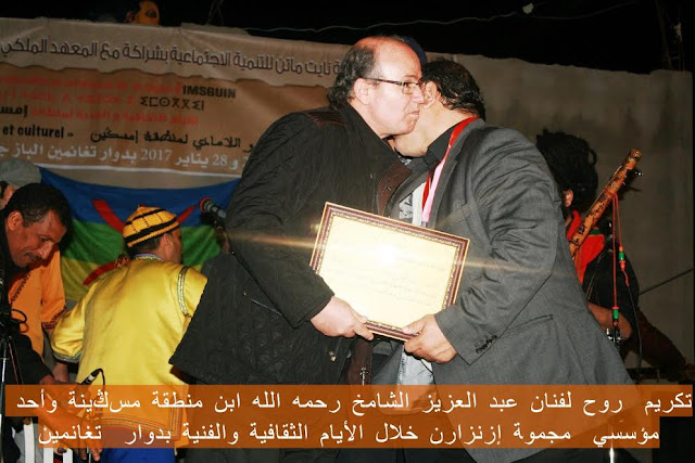 المحور الرابع : نشاط فني تم فيه تكريم روح الفنان عبد العزيز الشامخ الذي أعطى الأغنية الأمازيغية الشيء الكثير، و قد حضر هذه الأمسية مجموعتي تايوغت وإمزالن وزمرة من الفنانين المقتدرين على راسهم محمد الشامخ .