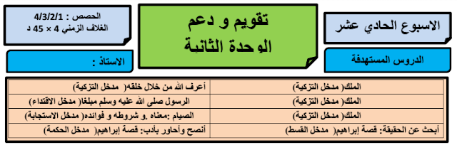 تقويم و دعم الوحدة الثانية مادة التربية الإسلامية للسادس ابتدائي