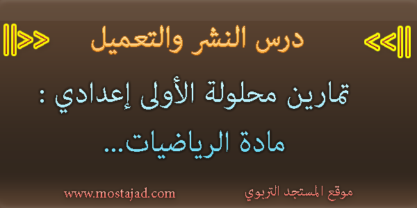 تمارين تطبيقية مختلفة لدرس النشر والتعميل مع الحل (التصحيح) في مادة الرياضيات، لتلاميذ السنة الأولى من التعليم الثانوي الإعدادي. التمارين ||>> تمارين النشر بالفيديو ||>> تمارين التعميل بالفيديو ||>> رابط للتحميل Downlaod عناصر الإجابة
