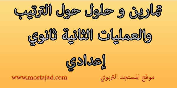 تمارين تطبيقية حول درس الترتيب والعمليات مع الحل (التصحيح) في مادة الرياضيات، لتلاميذ السنة الثانية من التعليم الثانوي الإعدادي. التمارين ||>> فيديو توضيحي ||>> رابط للتحميل Downlaod عناصر الإجابة للتمارين