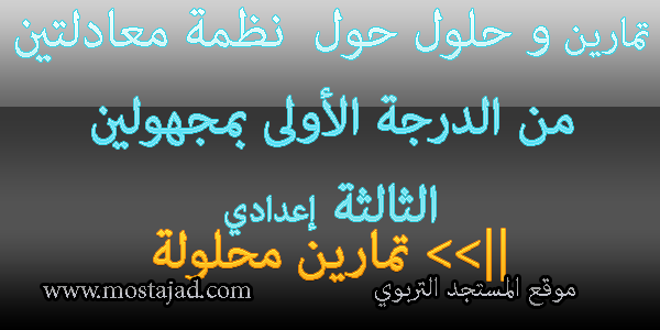تمارين تطبيقية حول درس نظمة معادلتين من الدرجة الأولى بمجهولين مع الحل (التصحيح) في مادة الرياضيات، لتلاميذ السنة الثالثة من التعليم الثانوي الإعدادي. ||>> سلسلة التمارين: ||>> ملخصات و شروحات جميع دروس الرياضيات رابط للتحميل Downlaod عناصر الإجابة للتمارين