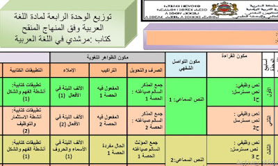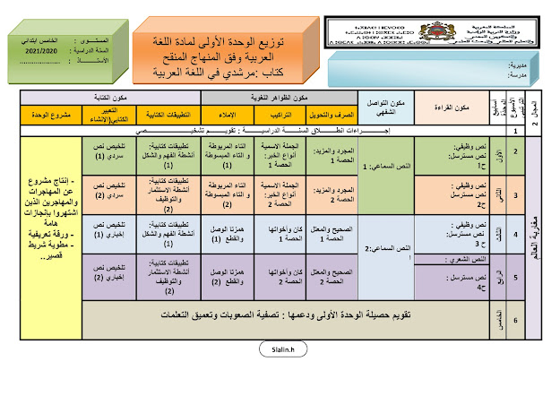 توازيع مجالية للغة العربية المنهاج المنقح 2020 المستوى الخامس ابتدائي