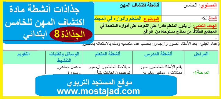 جذاذات المستوى الخامسمسار اكتشاف لمهن للخامس ابتدائي
