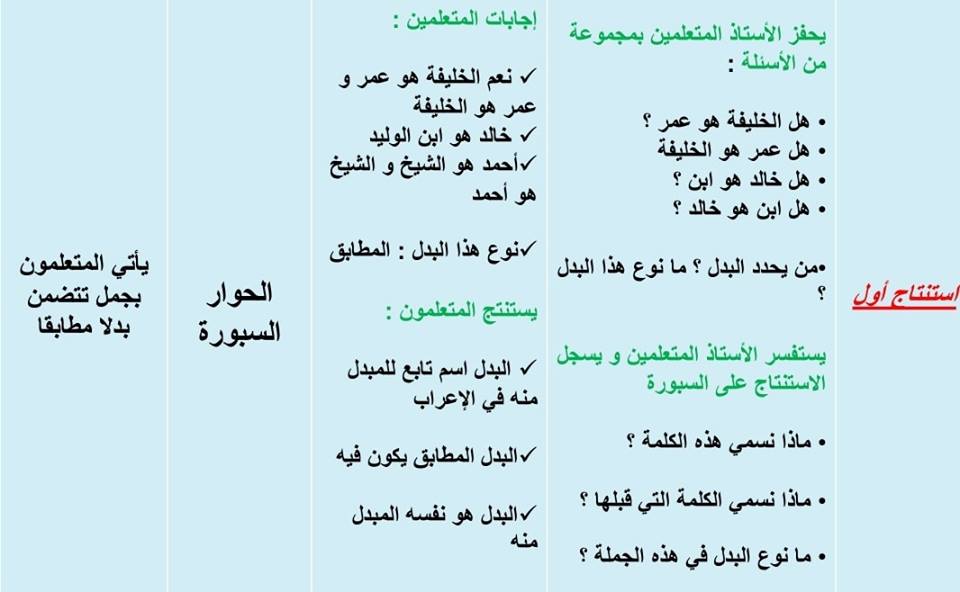 جذاذة التراكيب في اللغة العربية ، درس البدل
