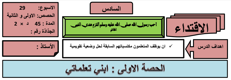 جذاذة درس أحب رسول الله صلى الله عليه وسلم ألتزم هدي النبي الخاتم للسادس ابتدائي مادة التربية الإسلامية