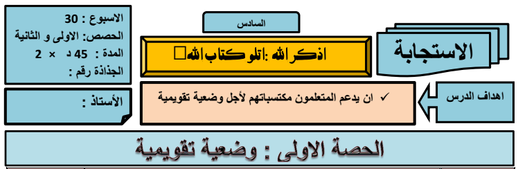 جذاذة درس اذكر الله اتلو كتاب الله للسادس ابتدائي مادة التربية الإسلامية