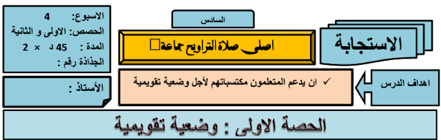 نقدم لكم في هذا الموضوع جذاذة اصلي صلاة التراويح جماعة للسادس ابتدائي مادة التربية الإسلامية، بشكل غاية في الروعة، يمكنكم تحميل الفرض من الرابط أسفله: