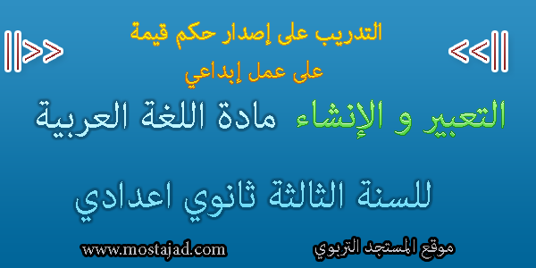 درس في مادة اللغة العربية (مكون التعبير والإنشاء) مهارة النقد والحكم: التدريب على إصدار حكم قيمة على عمل إبداعي لتلاميذ السنة الثالثة من التعليم الثانوي الإعدادي.