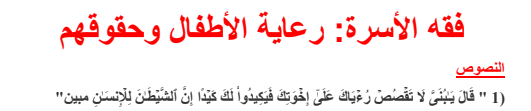 دروس مادة التربية الاسلامية أولى باكالوريا شعبة اداب وعلوم انسانية درس فــقــــه الأســــرة -رعاية الأطفال وحقوقهم Pour Télécharger لتحميل الملف