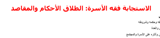 دروس مادة التربية الاسلامية أولى باكالوريا شعبة اداب وعلوم انسانية درس فــقه الأسرة الطـلاق – الأحكـام والمقاصـد Pour Télécharger لتحميل الملف