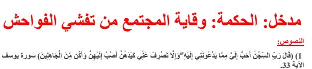 دروس مادة التربية الاسلامية أولى باكالوريا شعبة اداب وعلوم انسانية درس وقاية المجتمع من تفشي الفواحش Pour Télécharger لتحميل الملف