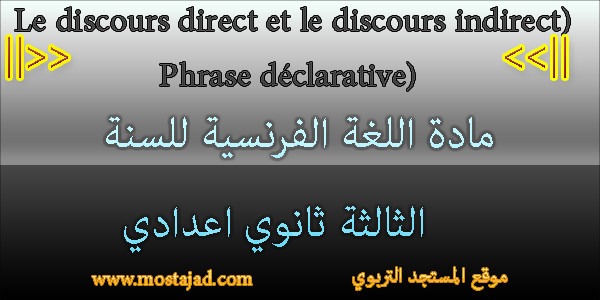 درس (Le discours direct et le discours indirect (Phrase déclarative – مادة اللغة الفرنسية – الثالثة إعدادي