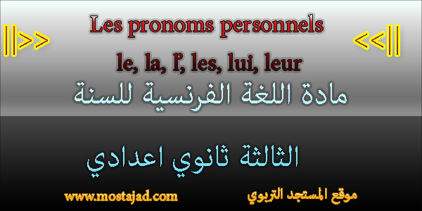 درس Les pronoms personnels: le, la, l’, les, lui, leur – مادة اللغة الفرنسية – الثالثة إعدادي