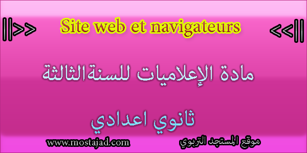 درس Site web et navigateurs– مادة المعلوميات – الثالثة إعدادي درس في مادة المعلوميات Site web et navigateurs لتلاميذ السنة الثالثة من التعليم الثانوي الإعدادي. من إعداد: الأستاذة بشرى العلوي. الدرس ||>> رابط للتحميل Downlaod درس Site web et navigateurs