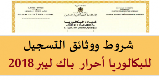 شروط التسجيل والترشح للبكالوريا احرار 2018:يحق للمترشح اجتياز امتحانات الباكالوريا شريطة ان يكون قد درس الى نهاية السنة الثالثة اعدادي على الاقل